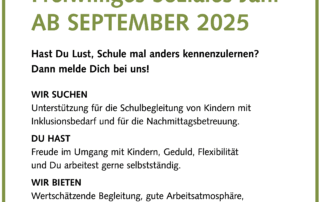 Wir sind eine inklusive, allgemeinbildende Schule in freier Trägerschaft. Unsere Lernbegleiter*innen arbeiten nach einem reformpädagogischen Konzept mit altersgemischten Lerngruppen. Bei [...]