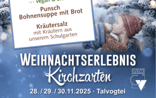 von Freitag 28.11. – Sonntag 30.11.2025. Komm zu unserem Weihnachtsstand und genieße eine leckere vegane Bio-Bohnensuppe mit Brot und Bio-Kräutersalz aus den Kräutern unseres [...]