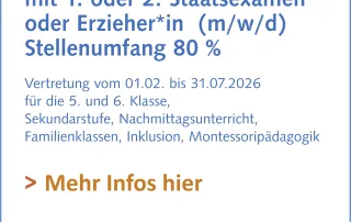 Für die Zeit ab spätestens 30. November 2025 suchen wir eine Vertretung für die 9. und 10. Klassen. Die Stelle [...]
